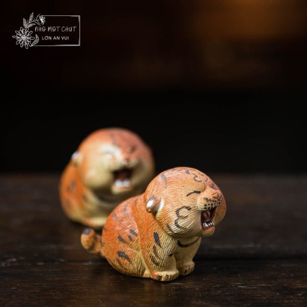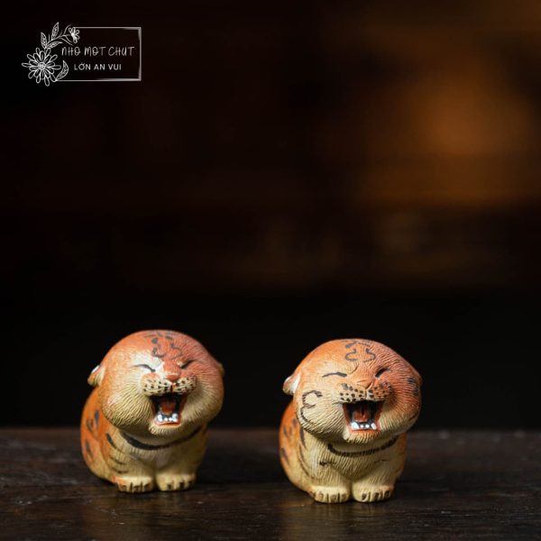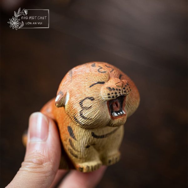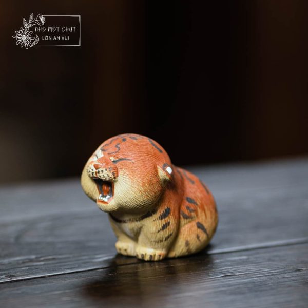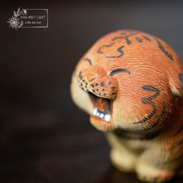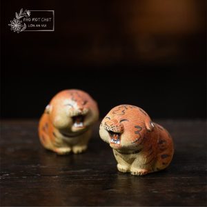 Chú hổ gốm An Uy được làm thủ công từ đất tử sa, dáng nhỏ gọn, màu cam ấm. Đường nét mềm mại, ánh men mộc mạc, mang đến cảm giác vững vàng nhưng vẫn gần gũi.