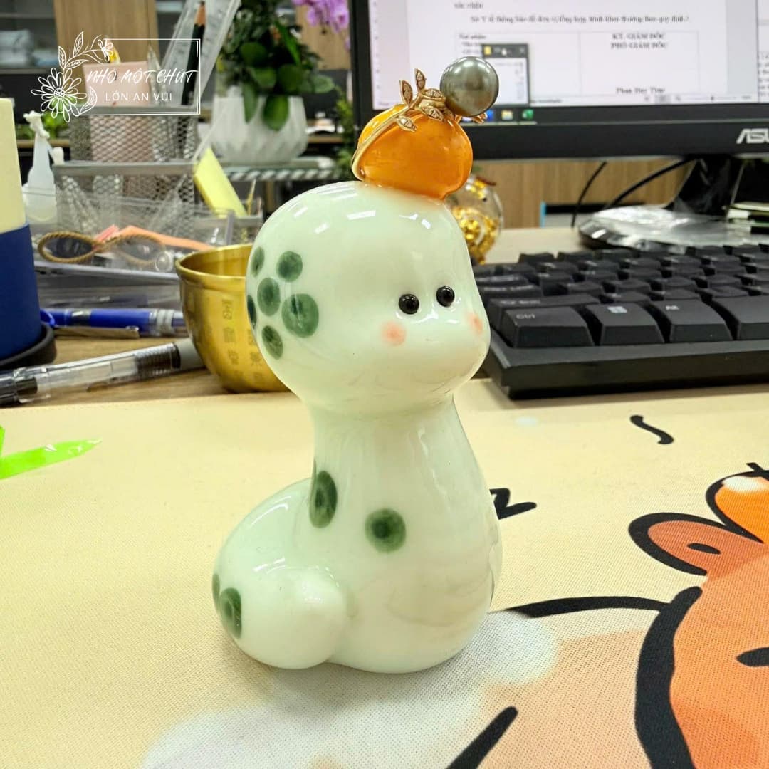 Hình tượng rắn đội quýt tượng trưng cho sự linh hoạt và trí tuệ dẫn dắt phúc khí. An Tĩnh – Rắn gốm đội quýt – mẫu tượng gốm trang trí này không mang năng lượng phô trương mà âm thầm bảo hộ, mang lại sự cát lành và thuận hòa cho chủ nhân. Đây là món quà tinh tế dành cho người bắt đầu hành trình mới hoặc đặt tại góc thiền, bàn làm việc như một biểu tượng của sự bình ổn nội tâm.